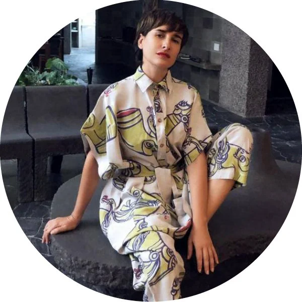 "Another fashion system is possible," says Mexican fashion designer Carla Fernández. She creates haute couture designs throughout Mexico. Fernández's work preserves and celebrates centuries-old textile techniques belonging to Indigenous communities and other popular and urban collectives in Mexico. At an early age she traveled with her father, then the director of museums and exhibits of the National Institute of Anthropology and History. Through this she learned about Mexico's diverse heritage and began collecting garments made by Indigenous and mestizo artisans. After studying art history and fashion design, Fernández turned her attention to traditional techniques of clothing construction in Mexico. Maintaining these techniques and imbuing them with innovation became the root of her practice. As she says: "To be original is to go back to the origin. The Fashion House that she heads together with her partner Cristina Rangel, collaborates in the design and production processes with artisans across Mexico, by celebrating their living cultures, and by using the house’s global platform to promote social justice and fair trade.